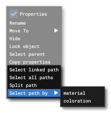 - Select Path By - From this sub-menu you can select all the paths that share the same: