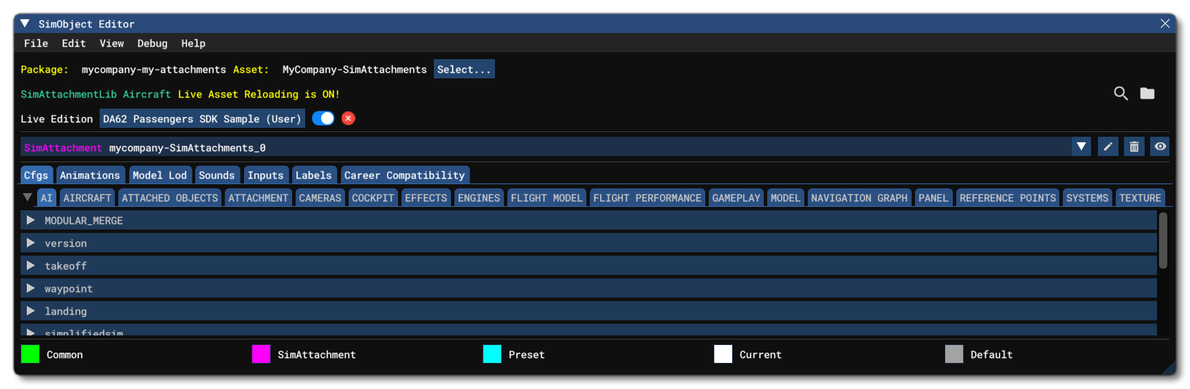 In the editor you can then start to modify the various CFG files that the attachment requires, along with many other features (not all of them will be used, but an attachment can have almost everything a SimObject can have):