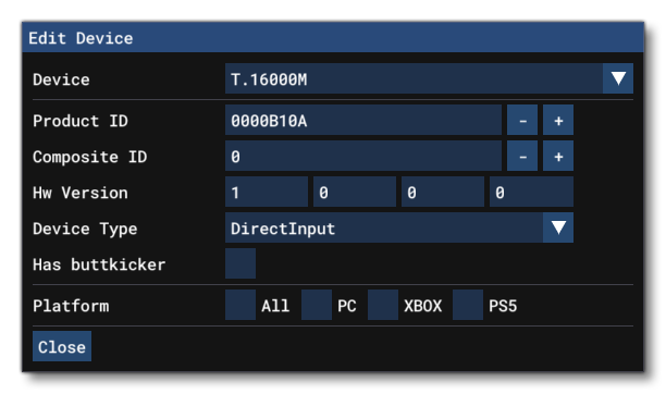 Finally you have the information about the device that is being used at the moment to generate the input profile XML. This can be changed by clicking the ✎ button, which will open the Edit Device window: