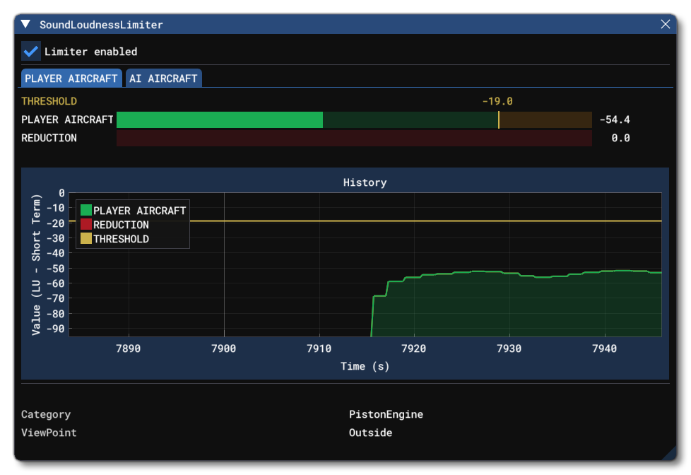 All aircraft in Microsoft Flight Simulator should be mixed respecting the ITU-R BS 1770-3 recommendations to ensure mix consistency between all Microsoft Flight Simulator partners and add-on creators. To help with this, the simulation now includes a sound Limiter option in the settings menu, which prevents the recommended sound levels from being exceeded in order to achieve loudness audio consistency throughout the MSFS 2024 experience for the user. The Sound Limiter debug window let's you visualise the sound limiter in real-time as the simulation runs, making it easier to correct the audio mix of both user and AI aircraft, if necessary.