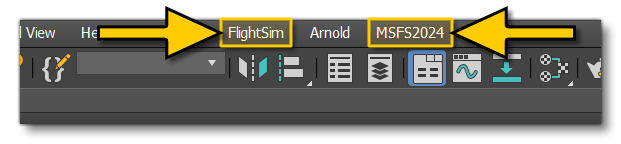 If you wish to work on projects designed for Microsoft Flight Simulator 2020, you may also install the 3DS Max plugin from the MSFS 2020 SDK. This should only be done after you have updated all scenes that you wish to update for Microsoft Flight Simulator 2024. On installing the older plugin version, you will now be presented with two flight simulator menus in 3DS Max:
