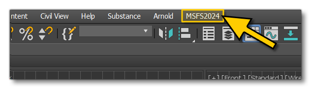 Having installed the latest version of the SDK plugin, you should see a new menu item in 3DS Max labelled MSFS2024: