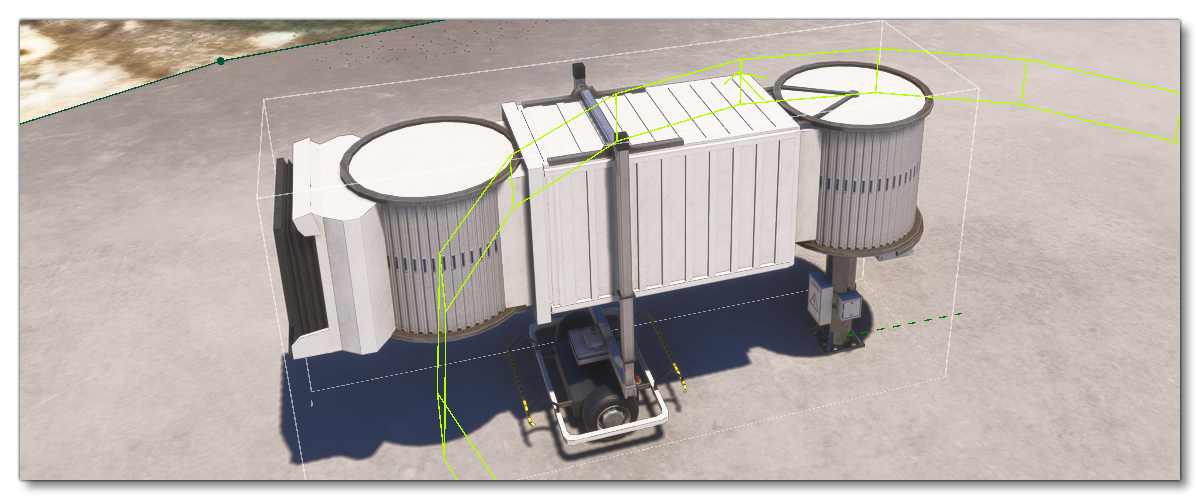 This sample project has a single Jetway object that can be added to an airport. Jetways are what are used at some airports to connect a parked aircraft to a gate. You can find information about creating Jetway visual assets (models) from the following page: