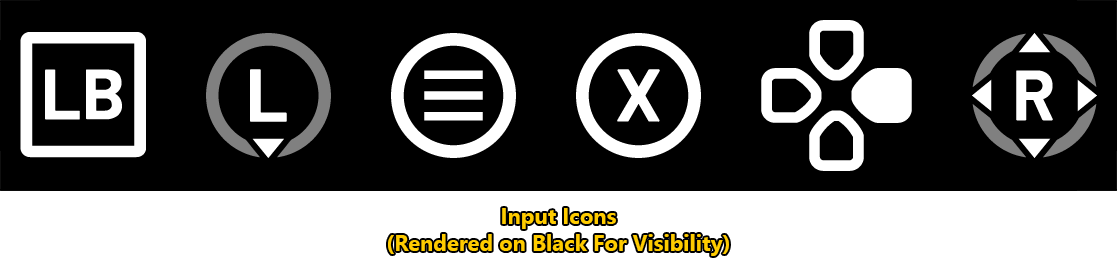 *.SVGicons for each button, axis, etc...: These images are optional and will be used at various times in the simulation UI to identify a button or control related to the device. The icons should be authored as flat white images - which can have varying alpha - on transparent backgrounds (see the example images below). Please see the DeviceConfig XML Properties page for how to link these files to a specific input.