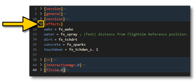 - Sections in the CFG and FLT files can be collapsed / expanded to condense down the information using the arrows beside each one.